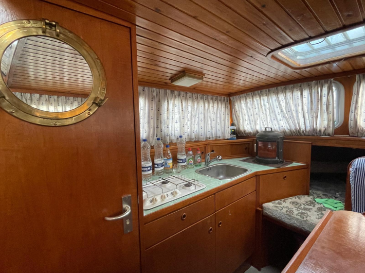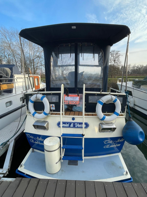 - motorkruiser bouwjaar 1974, motor vervangen in 1993 en volledig onderhouden elk jaar, boot volledig gerefit (geschilderd onder en boven water, nieuw tapijt) in 2025. Motor is Indunor Peugeot 93kw, boegschroef 2 jaar oud met aparte batterij. Lengte met zwemplateau 10 meter, breedte 3.05m, diepgang 1m.